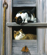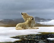 while his mate catches sight of the viewer - did she see you? The artist adeptly conveys