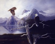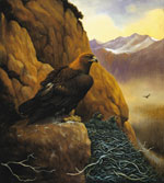 The golden eagle, matriarch, largest of the eagle family, watching over her young in
