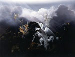 Pegasus bestowing enlightenment, strength and purity, triumphant over the dark forces.