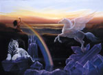 Notice the element of fairy-like Pegasus in the cloud formations in the sky. David's